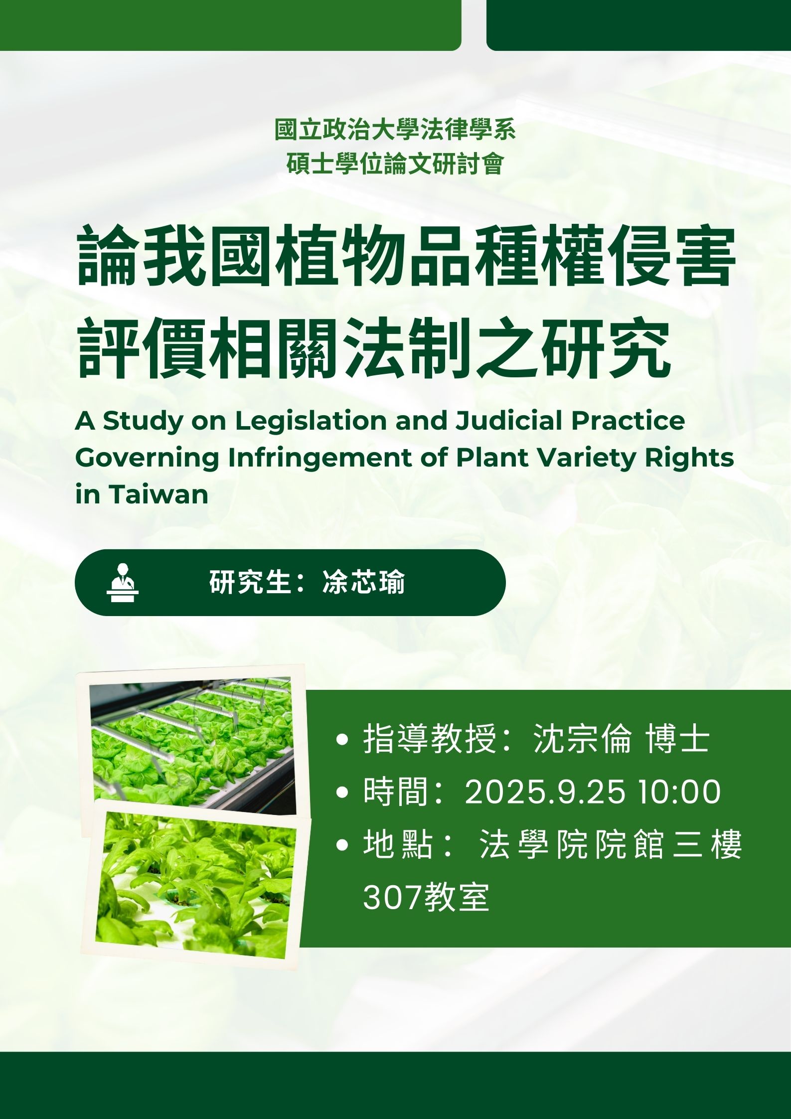 【論文研討】114.09.25(四)凃芯瑜《論我國植物品種權侵害評價相關法制之研究》